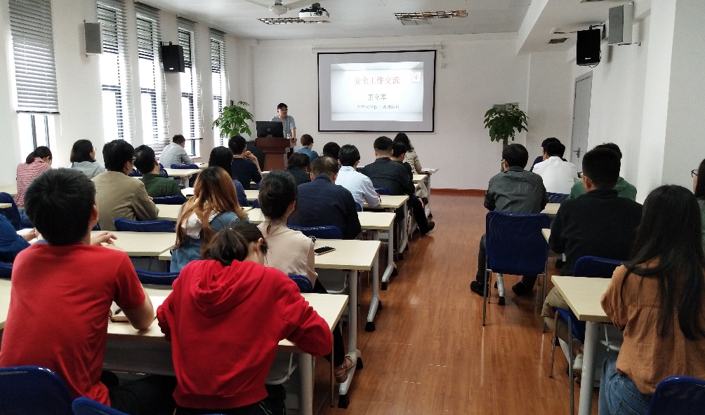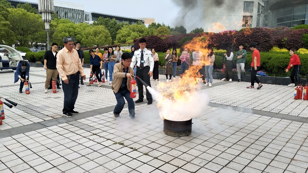 活动开始,由学校保卫处消防科王立军老师给大家做了消防方面的安全培训。随后,消防演练正式开始。随着应急警报铃声响起,各实验室负责老师第一时间迅速到岗,协助学生队伍快速、有序的撤离各实验室,学生都能按要求弯腰,用湿手绢或手捂着鼻子,从安全通道跟着队伍迅速撤离到安全场地。紧急疏散后,大家移步至图文信息中心正门广场空地,保卫处的老师为全体师生进行了灭火器等消防器材的使用方法、注意事项及常见火灾的扑救方法的培训。随后,师生们进行了灭火的实战操作演练。