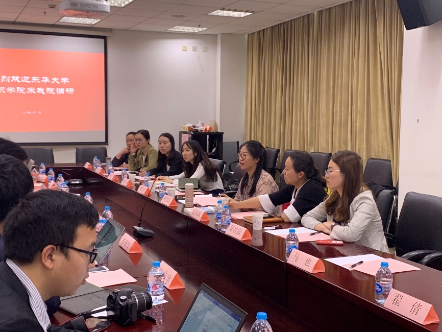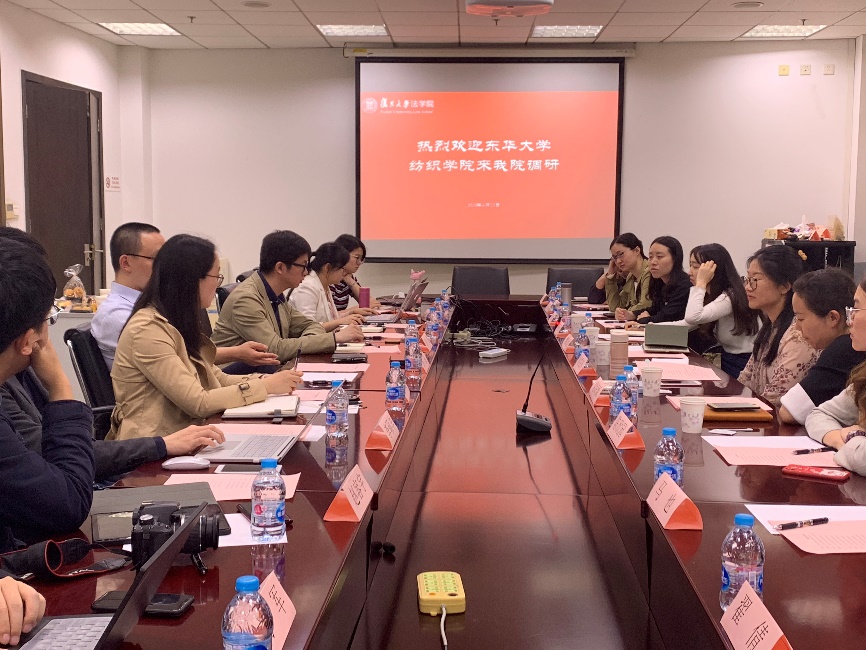 2019年4月25日,91成人 党委副书记刘雯玮、学生工作办公室主任袁海源及专职辅导员一行11人赴复旦大学法91成人调研学生工作,座谈会在复旦大学江湾校区廖凯原法学楼202室举办。