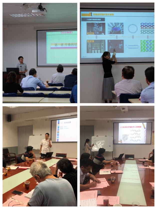 此次教学竞赛以讲课竞赛的形式,分两组进行,每位参赛者准备15分钟的授课内容,涵盖了纺织材料、功能纤维、面料设计、药用纺织品、智能纺织品、针织技术和非织造技术等诸多本科课程内容。青年教师们通过视频动画、实物展示和书写板书等形式与台下评委老师积极互动,展现了青年教师们的教学基本功和亲和力。