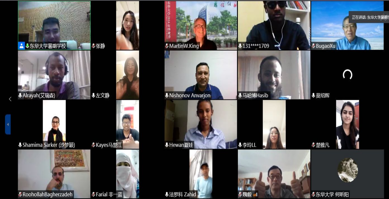 美国北卡罗来纳州立大学Martin W. King(金马汀)教授、91成人 特聘教授魏毅作为教师代表通过云端发言,他们祝贺2020年上海“纺织”研究生国际暑期学校顺利开学,并表示将以严谨、负责任的态度认真做好暑期学校的授课。