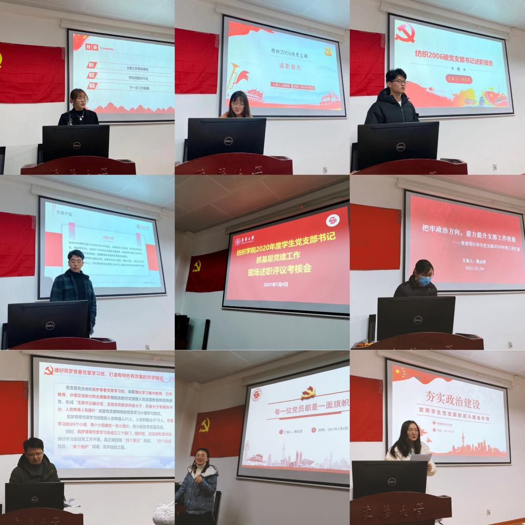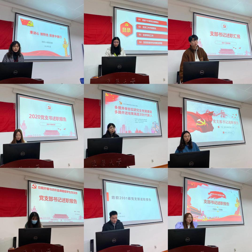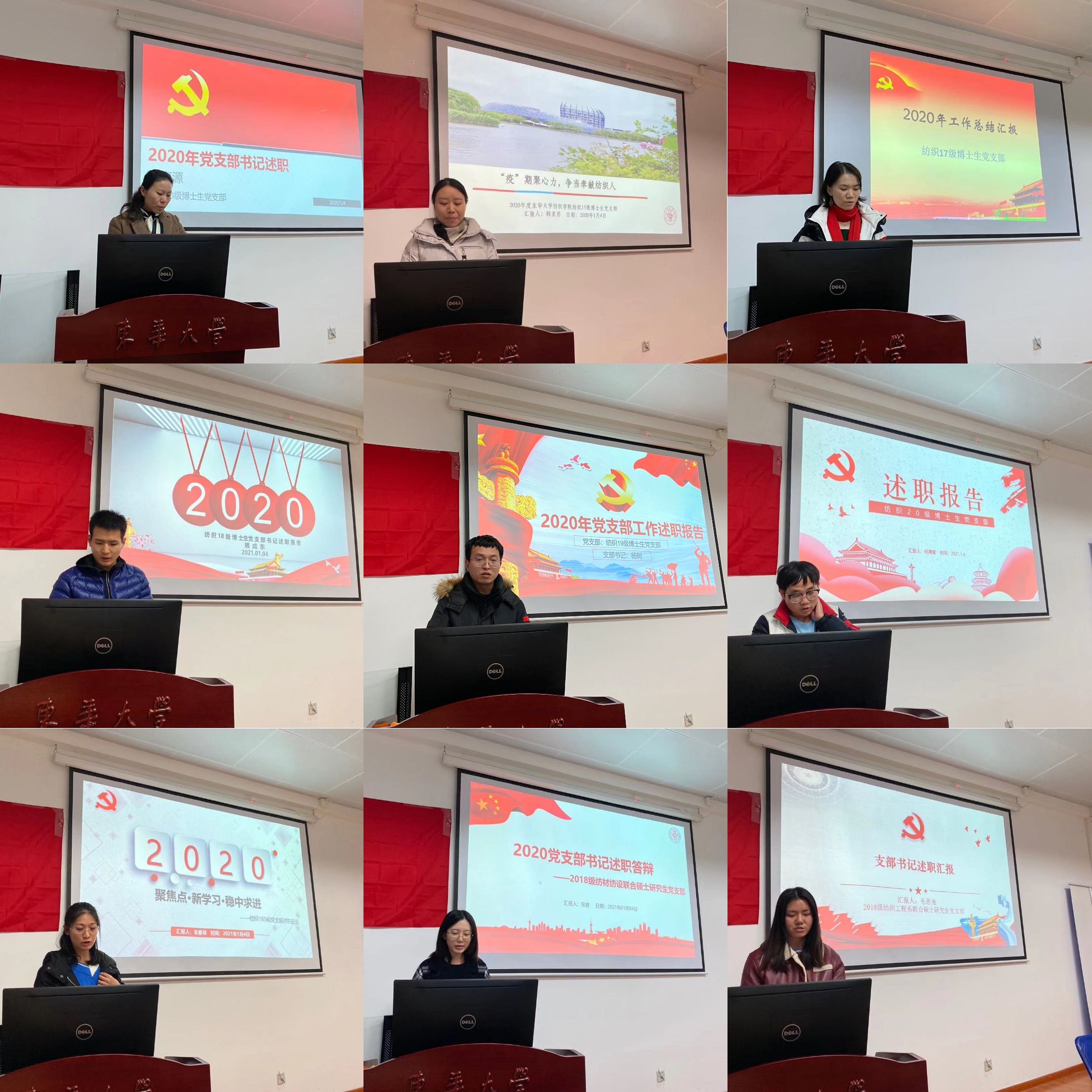 会上,26位学生党支部书记按照抓基层党建第一责任人职责要求,依次对2020年度履职情况、支部建设中的工作思路与主要做法、特色成果、存在问题及改进思路等认真进行了述职。