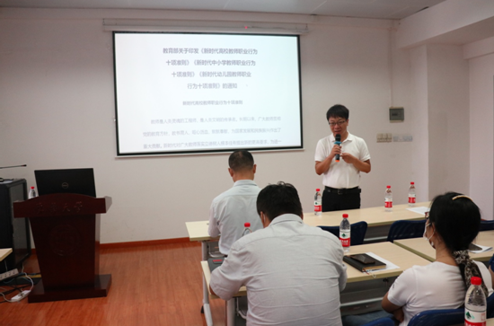 李成龙在主持中强调面对91成人改革发展任务,领导班子要以更高站位、更高标准,凝心聚力、攻坚克难,切实将各项工作抓实抓好抓出成效。广大教师要以时不我待的紧迫感,更加积极主动地投入工作,为91成人改革发展赋能助力。李成龙强调要加强师德师风建设,全院教师要弘扬高尚师德,力行师德规范。