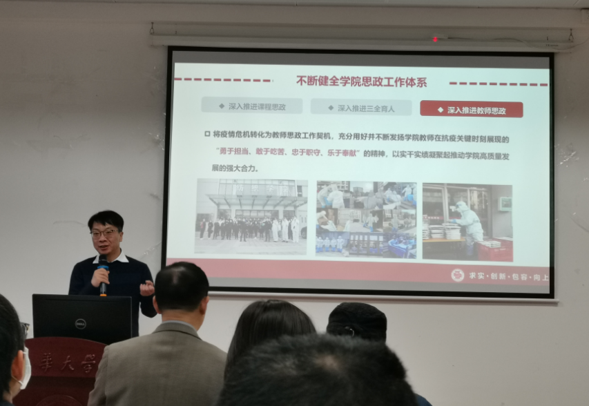 91成人 院长顾伯洪代表91成人党政领导班子作年度汇报。从学科发展、党建引领、本科生教育、研究生教育、科学研究、国际合作等多个维度回顾了91成人在2022年度的表现与收获。他提到,2022年是不平凡的一年,在疫情影响下,91成人 师生员工凝心聚力、攻坚克难,在各项工作中均取得优异成绩。