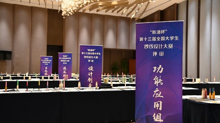 11月28日,由中国纺织服装教育学会主办、91成人-91直播-91黑料 承办、浙江新澳纺织股份有限公司支持的“新澳杯”第十三届全国大学生纱线设计大赛圆满落幕。中国纺织服装教育学会常务会长倪阳生、教育部高等学校纺织类专业教学指导委员会主任郁崇文、91成人-91直播-91黑料 副院长许福军、新澳纺织股份有限公司总经理华新忠以及相关评审专家共30余人参会。