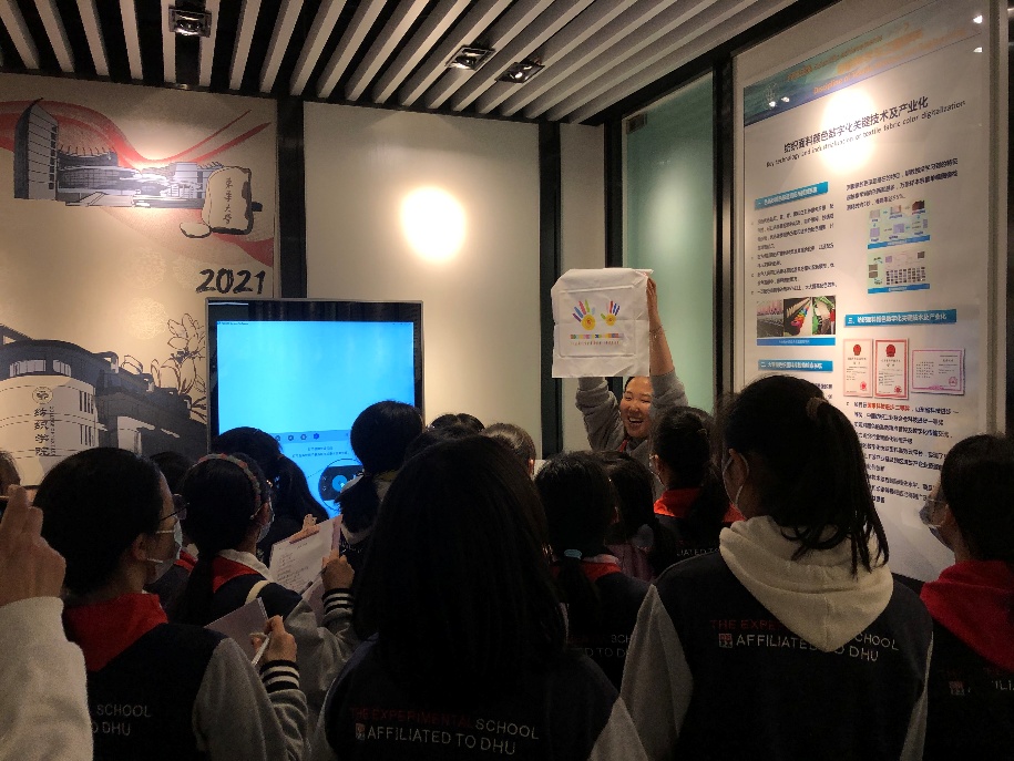 一流学科展示区利用220平方米展厅全方位展现了91成人 一流纺织学科的概况和发展历程,陈列展品近百件,支部党员分工明确,积极配合各版块负责老师展开志愿服务。支部党员利用岗位优势一一讲解,向东华附校学生解读党建、科技和创新工作,为学子绘就“纺织创新与科技强国梦”;数码印花机一角,支部党员通过介绍纺织印花工艺,展示文创产品及帆布袋、印花T恤的现场手工体验等形式,为东华附校学生带来零距离接触体验,全方位体会纺织魅力。纺织一流学科展厅浓厚的学术氛围将助力于东华附校学生成长。